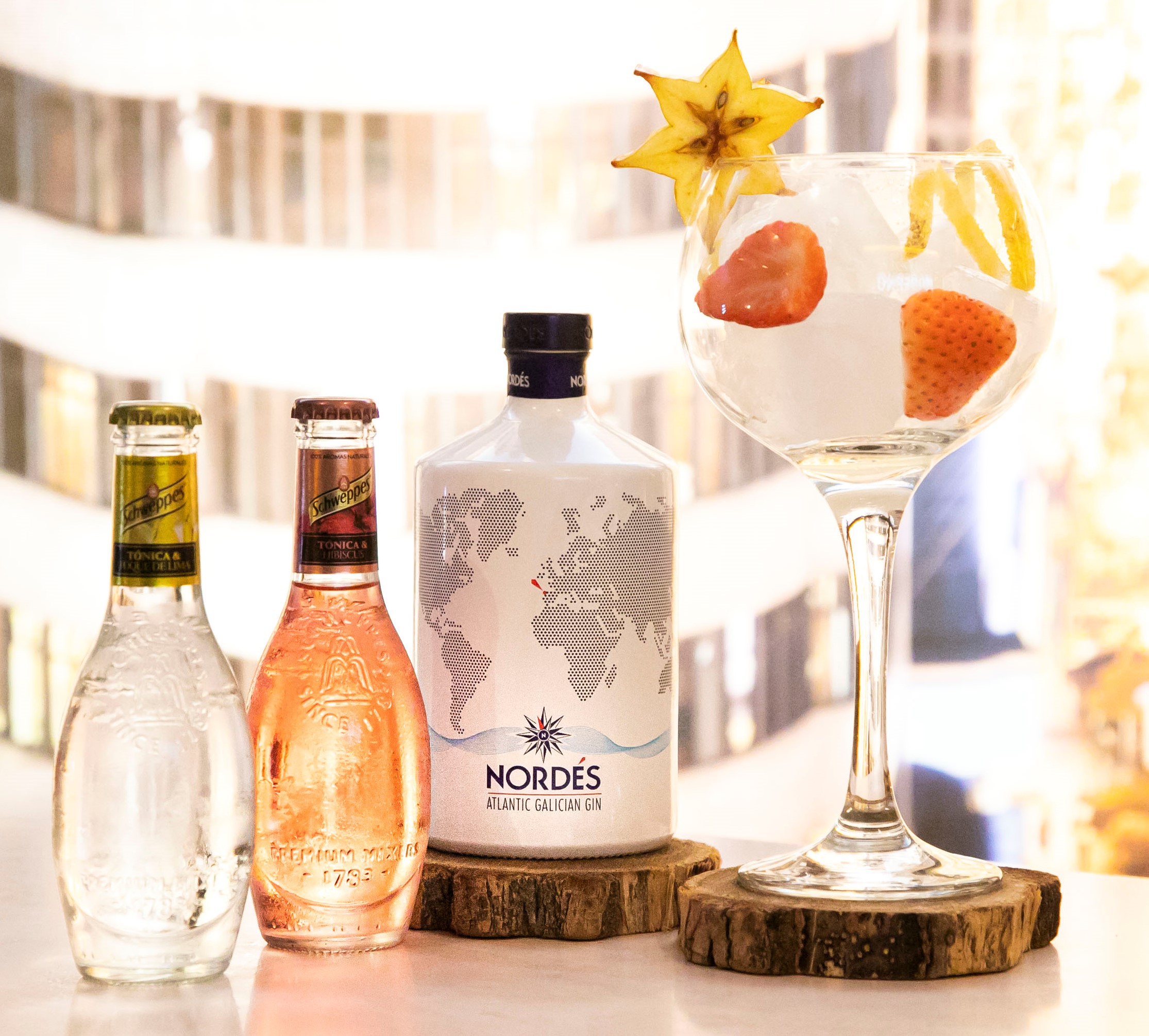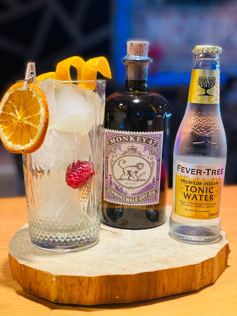 Una gin para valientes con sus aromaticos 47 grados de alcohol, esta maridado con naranja, frambuesa y con una tonica de burbuja fina como es la fever-tree